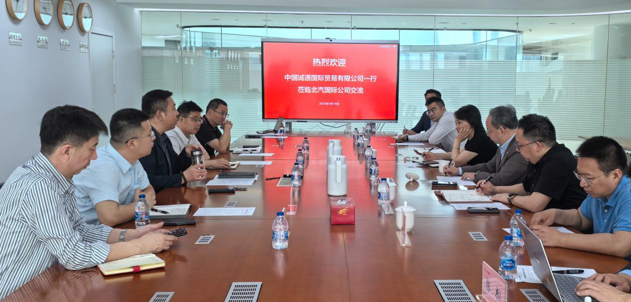5月19日,誠通國貿(mào)黨委書記、董事長何建祥帶隊(duì)與北京汽車國際發(fā)展有限公司黨委書記、董事王建輝圍繞服務(wù)國家戰(zhàn)略、整合優(yōu)勢資源、產(chǎn)業(yè)協(xié)同、助力中國先進(jìn)制造業(yè)出海、共同實(shí)現(xiàn)海外業(yè)務(wù)跨越式發(fā)展進(jìn)行座談交流。誠通國貿(mào)副總經(jīng)理桂青,北汽國際副總經(jīng)理謝俊明、北汽國際副總裁孫志勇、北汽國際副總裁趙鵬飛、凱晟集團(tuán)相關(guān)領(lǐng)導(dǎo)參加會議。 何建祥介紹中國誠通及誠通國貿(mào)的基本情況,誠通國貿(mào)“十五五”期間由貿(mào)易型向資源型企業(yè)戰(zhàn)略轉(zhuǎn)型思路,指出協(xié)同助力國內(nèi)先進(jìn)制造業(yè)及產(chǎn)能出口,服務(wù)國家戰(zhàn)略、賦能實(shí)體經(jīng)濟(jì)、保障產(chǎn)業(yè)鏈安全,實(shí)現(xiàn)國有資本在全球產(chǎn)業(yè)鏈中的優(yōu)化配置將是雙方未來合作的重點(diǎn)方向。王建輝介紹了北汽集團(tuán)的發(fā)展歷史以及當(dāng)前北汽集團(tuán)旗下各品牌主流車型。業(yè)務(wù)涵蓋整車研發(fā)與制造、零部件生產(chǎn)、汽車服務(wù)貿(mào)易,并積極布局新能源汽車和智能網(wǎng)聯(lián)領(lǐng)域。調(diào)研期間,何建祥一行還參觀了北汽集團(tuán)展廳和汽車歷史展館,調(diào)研了北汽集團(tuán)順義研發(fā)生產(chǎn)基地。誠通國貿(mào)和北汽國際相關(guān)部門負(fù)責(zé)人參加座談。