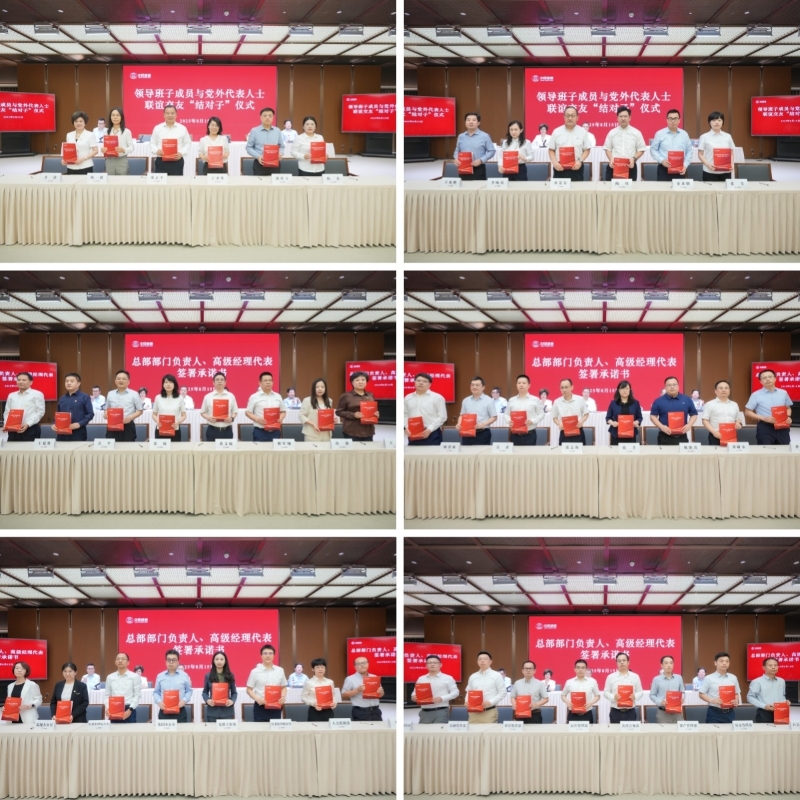 會上,舉行了集團(tuán)領(lǐng)導(dǎo)班子成員與黨外代表人士聯(lián)誼交友“結(jié)對子”儀式;總部部門負(fù)責(zé)人及高級經(jīng)理代表簽署了深化三項制度改革承諾書。